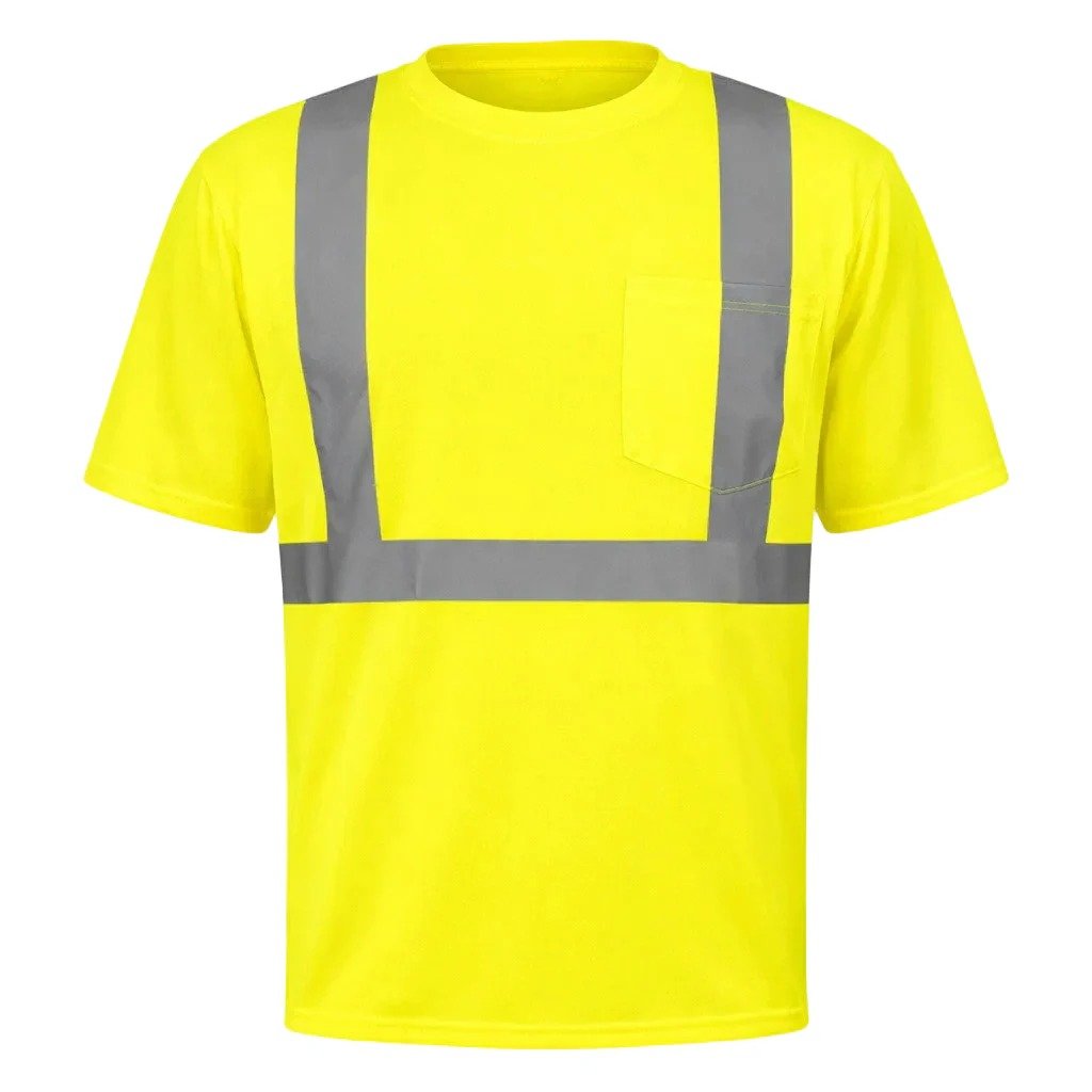 Men’s High Visibility Reflective Road Work Construction Safety T-Shirt With Pocket